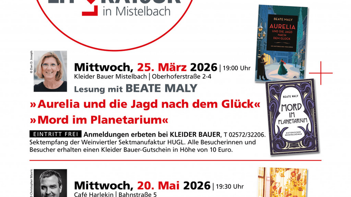 Eine Veranstaltungskooperation der Stadtgemeinde / Stadtbibliothek, Café Harlekin und Buchhandlung KRAL.