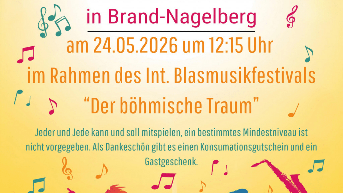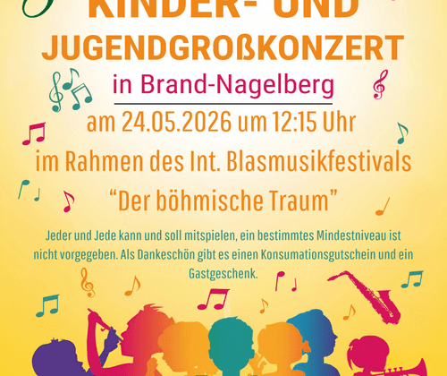 Am 24.05.2026 möchten wir um 12:15 Uhr im Rahmen unseres Int. Blasmusikfestivals „Der böhmische Traum“ der Zukunft der Blasmusik mehr Raum geben.