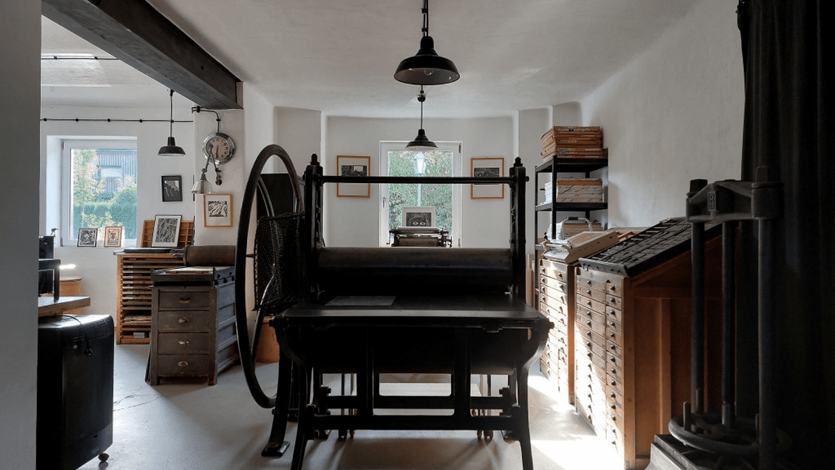 mit all ihren größtenteils historischen Druckmaschinen und Druckerpressen