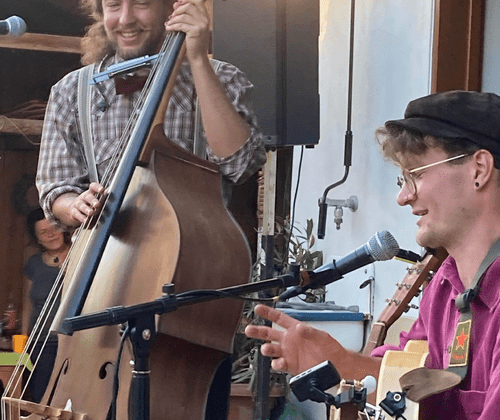 Ein neu erfundenes Duo das sich durch die Gassen von Herzogenburg drängelnd den Weltruhm erspielen will. Pseudopeotische Texte treffen auf schräge Austropop Harmonien, abgerundet mit ein bissl Wiener Schmäh ergibt sich der typisch moderne-Retro-Sound der beiden Musiker.