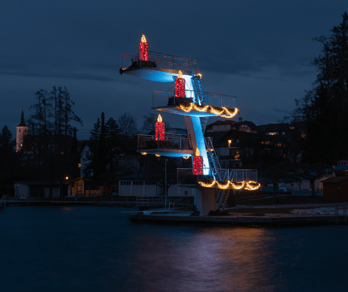 Das Highlight: der mit Kerzen beleuchtete Sprungturm - der wohl höchste Adventskranz in der Region. Weiteres findet eine Advent Schifffahrt statt, weitere Infos hier.