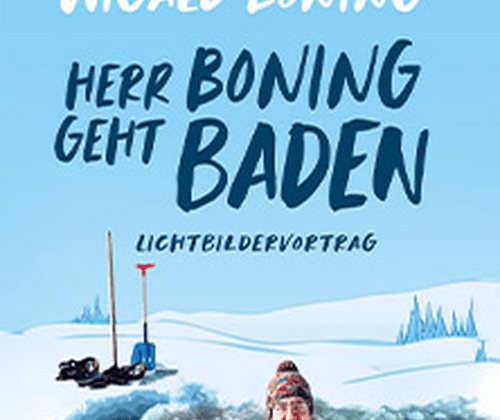 Seit Sommer 2022 geht Wigald Boning jeden Tag zum Baden, draußen, bei Wind und Wetter. Er legte sich seitdem mit Schwänen und Frachtschiffkapitänen an, beschwamm das Meer, glasklare Bergseen und schlammige Tümpel, tauchte in Eislöchern ab und krönte sich selbst am Coronation Day mit einem Bad in der Londoner Themse (Salbung mit zweifelhaften Pflegeprodukten inbegriffen). In einem launigen Lichtbildervortrag nimmt Boning seine Zuhörer mit in tiefste Tiefen und auf den Wellenkamm seines sportlichen Schaffens und gibt bei Bedarf auch Tipps für Nachahmer: Wie hält man beim Winterbaden die Kälte in Schach? Was gibt es im Regenrückhaltebecken deutscher Flughäfen zu beachten? Und: Warum überhaupt Jahre lang täglich Baden gehen? Macht das schön? Oder wenigstens Spaß?