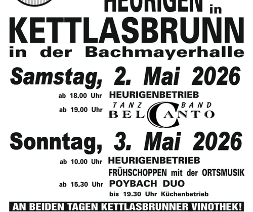 Am Sonntag dem 03. Mai 2026 startet der Heurigenbetrieb ab 10:00 Uhr, für ein zünftiges Frühschoppen sorgt die Ortsmusik von 11:00 Uhr bis 14:00 Uhr.