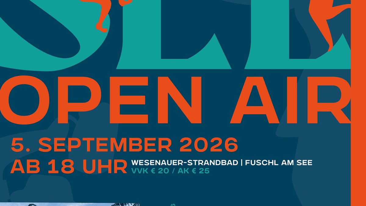 Fuschlsee Open Air am Wesenauer Badestrand Am Samstag, 05. September 2026, verwandelt sich der Wesenauer Badestrand in Fuschl am See ab 18:00 Uhr in eine stimmungsvolle Open-Air-Bühne. Der Heimatverein Fuschl am See lädt zu einem gemütlichen Abend mit traditioneller und moderner Volksmusik ein. Für beste Unterhaltung sorgen Alpensound und die Wüdara Tanzlmusi. Freuen Sie sich auf musikalische Highlights, gute Stimmung sowie kulinarische Schmankerl in einzigartiger Seelandschaft. Ein perfekter spätsommerlicher Abend für die ganze Familie! Ticket Informationen: VVK 20,00 € / AK 25,00 € (Einlass ab 17:30 Uhr) Tickets sind im Tourismusverband oder im Musikgeschäft Höllwerth in Bad Ischl erhältlich.