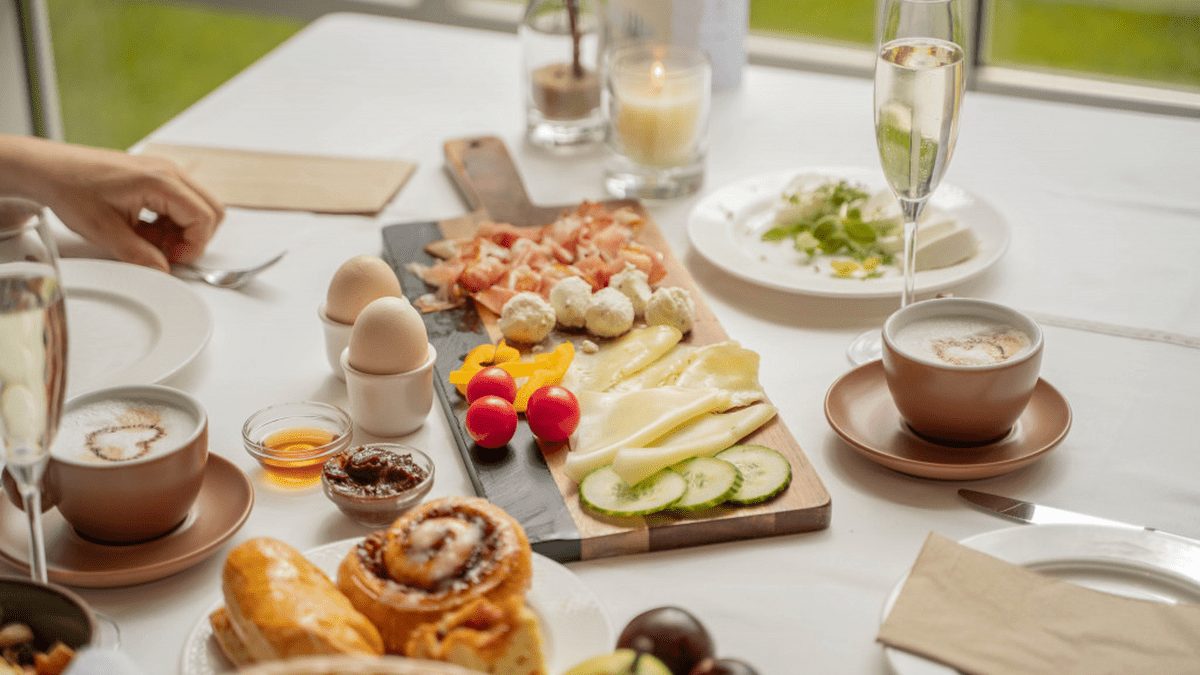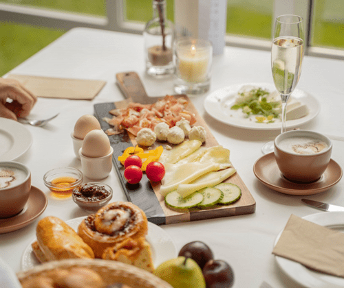 Dazu genießen Sie Cappuccino, Tee, Birnenschaumwein und regionale Säfte in unbegrenzter Menge.