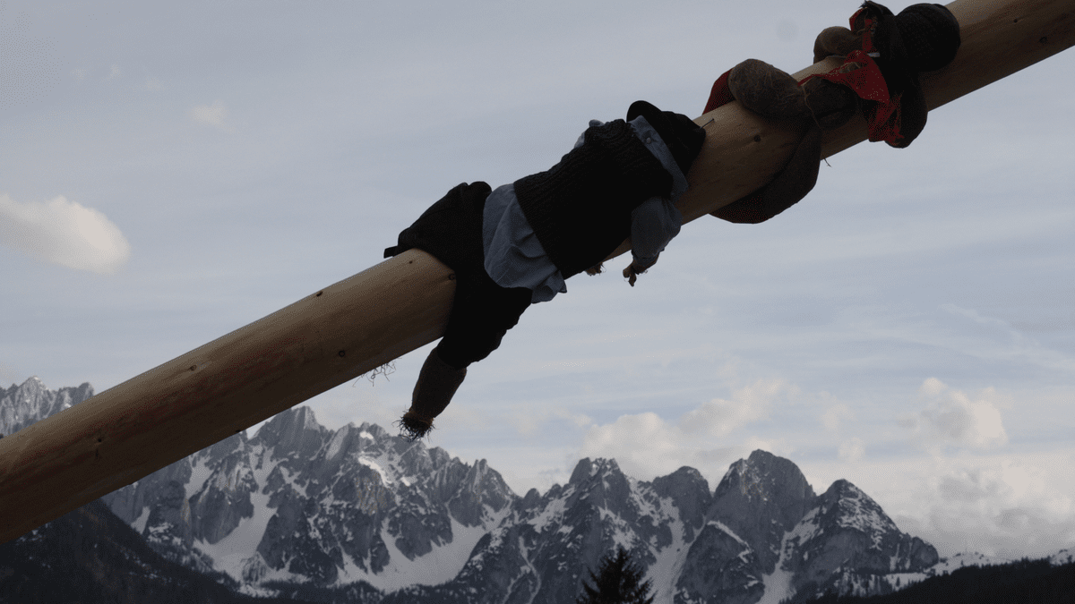 Maibaumaufstellen am Areal der Mittelschule Gosau