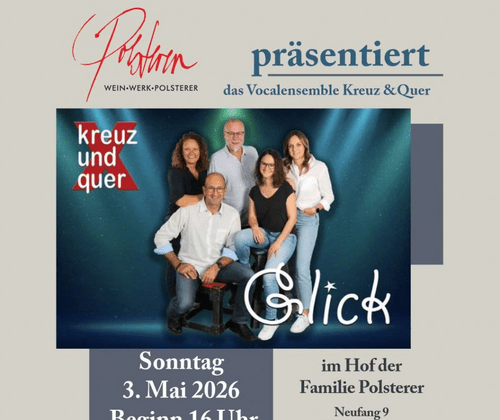Das Vocalensemble Kreuz & Quer lädt zu einem stimmungsvollen Konzertnachmittag im Hof der Familie Polsterer ein. Mit ihrem Programm „Glick“ präsentieren die Sängerinnen und Sänger ein abwechslungsreiches Repertoire aus modernen Vokalarrangements und bekannten Melodien – unterhaltsam, berührend und musikalisch vielseitig.