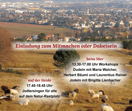 17:00: Wird gemeinsam oder in Grüppchen auf die Perchtoldsdorfer Heide gegangen, gerne auch jodelnd. Wer sich mit dem Gehen schwer tut, kann bis zum Heideparkplatz mit dem Auto fahren.