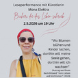 Die Autorin nimmt das Publikum mit auf eine Reise durch berührende Geschichten – von kindlich-leichten Zugängen zu großen Lebensfragen bis hin zu tiefgehenden Reflexionen über Selbstbestimmung, Heilung und die Kraft der eigenen Stimme.