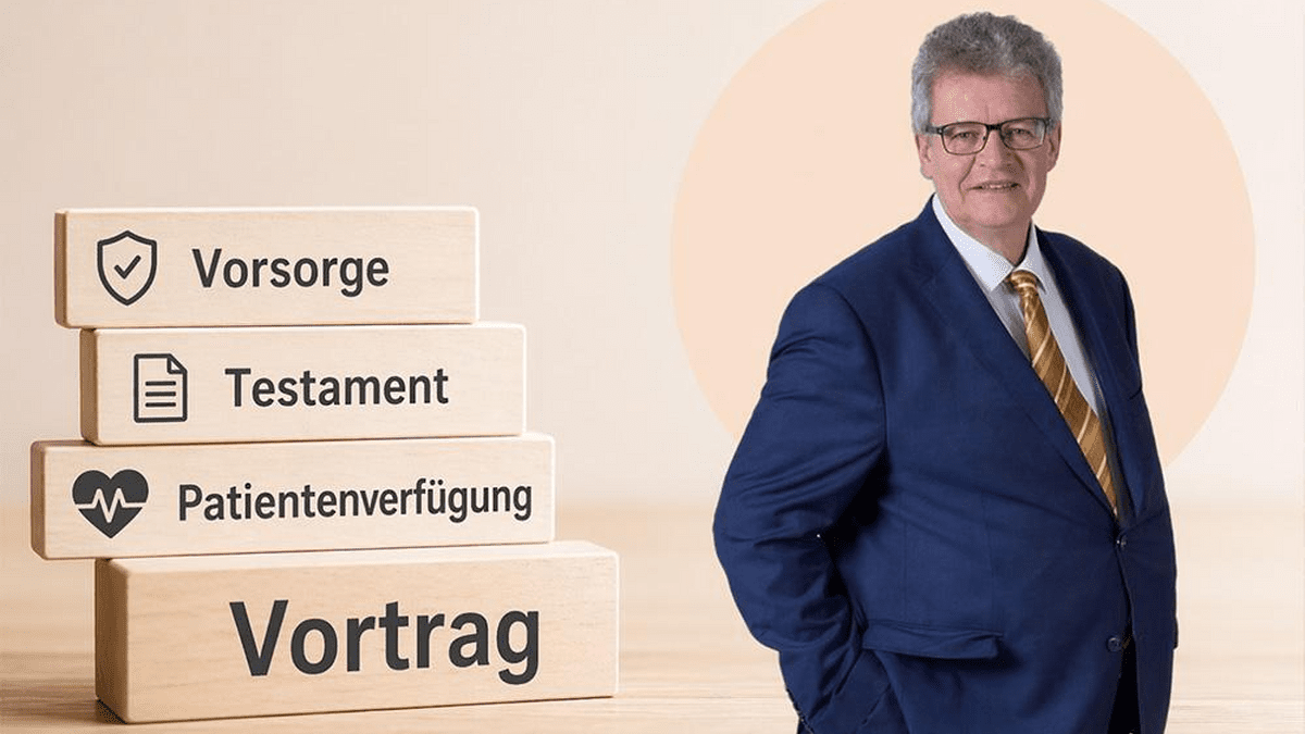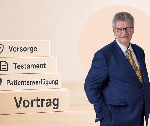 Testament, Vorsorgevollmacht und Patientenverfügung – Viele schieben dieses Thema vor sich her. Doch genau hier geht es um Sicherheit, Klarheit und Verantwortung – für dich selbst und für die Menschen, die dir wichtig sind. An diesem Abend zeigt dir Notar Mag. Dietmar Mühl verständlich und praxisnah, worauf es wirklich ankommt. Erfahre, wie du rechtzeitig vorsorgen kannst Triff selbstbestimmte Entscheidungen für deine Zukunft Nimm deinen Liebsten Unsicherheit ab