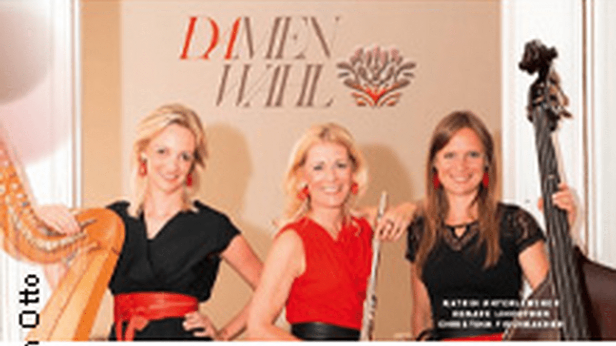 Das ist der Name des Ensembles, in dem drei großartige Musikerinnen aus drei verschiedenen Regionen Österreichs miteinander musizieren. Mit Harfe, Kontrabass, Flöten, Tuba, Gitarre, Klarinette, steirischer Harmonika und Hackbrett im Gepäck gestalten Katrin Unterlercher, Renate Linortner und Christina Fischbacher ein außergewöhnliches Musikerlebnis. Crossover-Musik vom Allerfeinsten. Jede der Musikerinnen bringt ihre eigenen Ideen ein und gibt Einblicke in ihre eigene musikalische Lebenswelt. Im Zentrum steht die Volksmusik, aber das Programm bietet auch Ausflüge in die Welt der Oper, die Renate Linortner von der Volksoper Wien einbringt, oder heiße Tangorhythmen. Tradition und Kreativität verbindet diese drei Musikerinnen, die sich als Lehrende in Woodstock Academy kennengelernt haben und die gemeinsam auf höchstem Niveau mutig, tiefgründig, verspielt und voller Seele gemeinsam singen, spielen und musizieren.