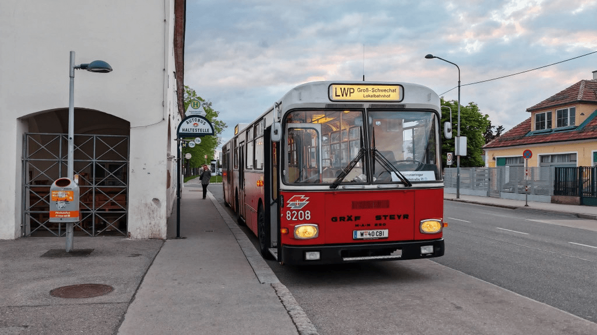 Unsere Busse lassen euch auch abseits der Gleise in die Vergangenheit reisen und pendeln zwischen Wien Simmering und Schwechat.