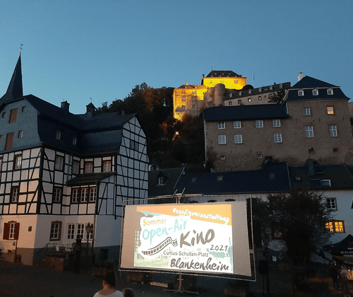 Der Curtius-Schulten-Platz in Blankenheim verwandelt sich erneut in einen einzigartigen Open-Air-Kinosaal. Nehmen Sie Platz auf den Stufen des historischen Ortskerns in Blankenheim und genießen Sie mit romantischem Blick auf die Burg einen aktuellen Kinofilm unter freiem Himmel. Eine Tüte Popcorn und ein Getränk dürfen selbstverständlich nicht fehlen und machen den Abend zu einem unvergesslichen Erlebnis.