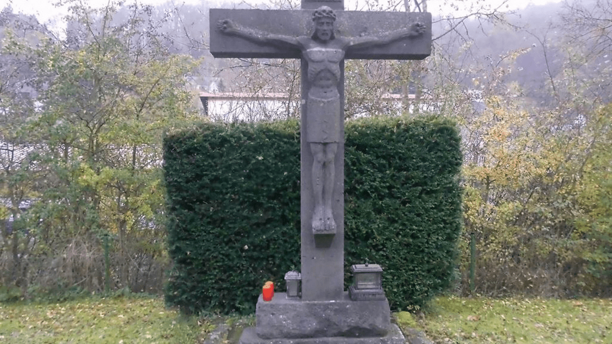 Feierliche Kranzniederlegung am Ehrenmal zum Gedenken an die Gefallenen und Verstorbenen beider Weltkriege, im Anschluss an die heilige Messe.
