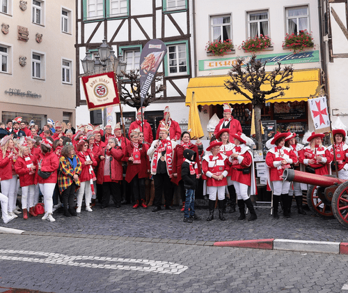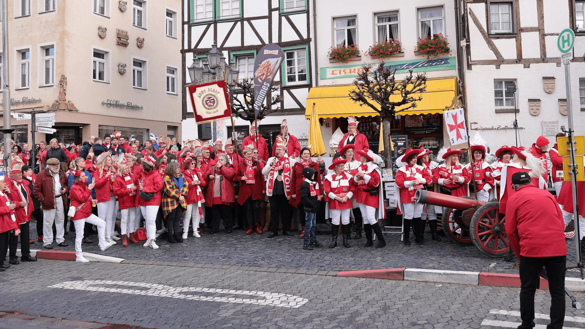 Großer Sessionsauftakt der KG Rot-Weiß Adenau e. V. auf dem Marktplatz in Adenau.