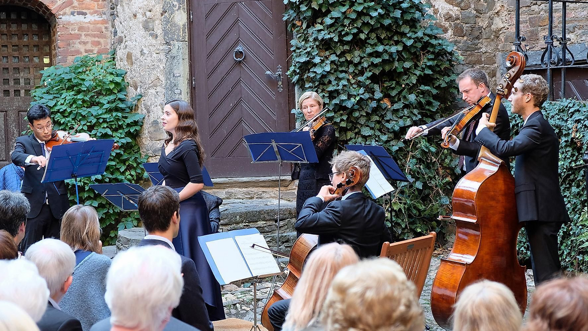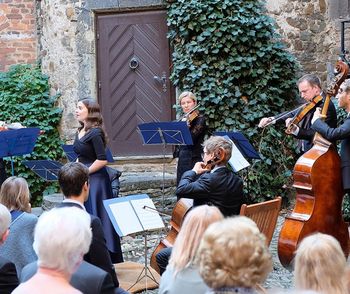 In diesem Jahr werden unter dem Motto „Virtuosissimo“ Werke von Tartini, Mozart, de Sarasate und mehr zu hören sein – dies wieder im schönen Ambiente des Schloss-Innenhofes mit seiner guten Akustik.