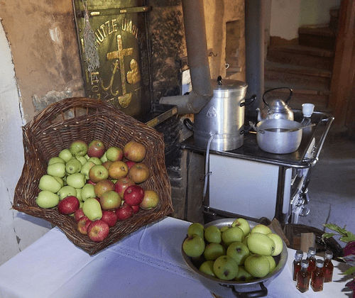 Mehrere Stände bieten eine Vielfalt an Äpfeln und Apfelprodukten an, so etwa seltene regionale Obstsorten, Obstbäume, Apfelwein und „Viez“ sowie Apfelpfannkuchen. Auch die Museumsgaststätten haben an diesem Tag ihr Angebot um Apfelspeisen erweitert. Hier warten z.B. Schweinegulasch mit Quitten und Semmelknödel und Milchreis mit Apfelmus.