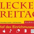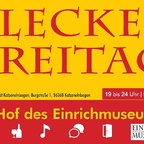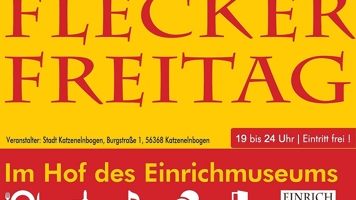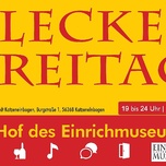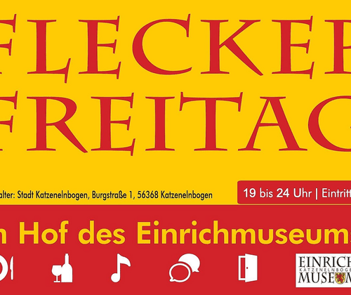 An mehreren Freitagen in den Sommermonaten lädt der Flecker Freitag wieder zu einem ganz besonderen Abend nach Katzenelnbogen ein. Freut euch auf wechselnde Editionen mit leckeren warmen und kalten Speisen, erfrischenden Getränken, Bier und Wein – und das alles in der einzigartigen Atmosphäre des idyllischen Innenhofs des Einrichmuseums.