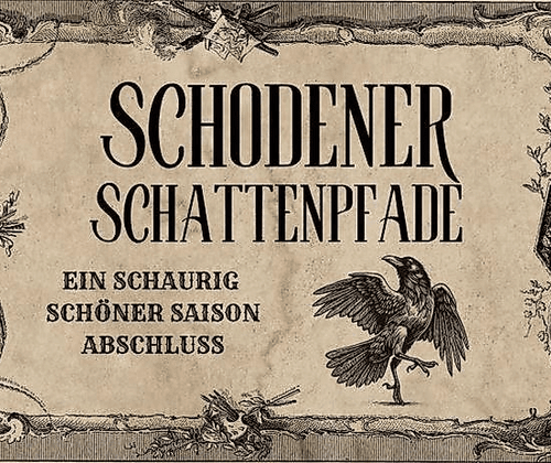 Nach einem Begrüßungsdrunk und Snack beginnt die geheimnisvolle Wanderung (ca. 3 km, 90 hm), festes Schuhwerk unbedingt erforderlich! Gespickt mit Schodener Schauergeschichten und drei begleitenden Weinen.
