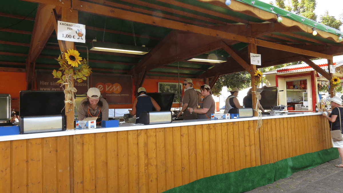 Der Auftakt erfolgt am Freitagmorgen mit dem traditionellen Kartoffelschälen auf der Pfarrwiese (Eingang Burgstraße). Am Abend beginnt das bunte Treiben auf dem Festplatz mit kulinarischen Angeboten wie Cocktails, Wein, Bier und den beliebten Kröbbelchen. Ab 20:00 Uhr sorgt eine 80er/90er-Party mit DJ Sascha für Stimmung.