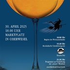 Wer wird die neue Weinhex‘ von Wesel…? Diese Frage stellen sich die Oberweseler schon lange im Voraus. Doch dieses Geheimnis wird noch fest gehütet, bis am 30. April die neue Weinhex‘ mit Zauberknall und Hexenfeuer dem großen Weinfass auf dem historischen Marktplatz entsteigt.