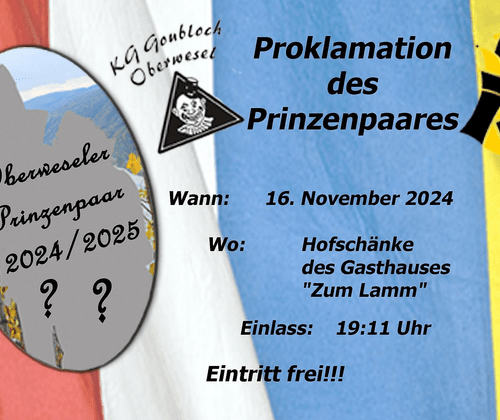 Die Prinzenproklamation findet in diesem Jahr wieder im Gasthaus "Zum Lamm" statt.