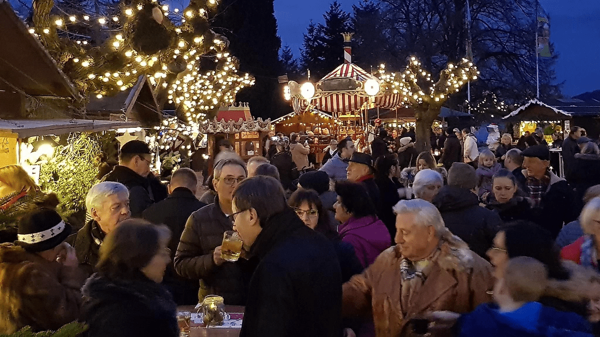 Der Weihnachtsmarkt findet im Kurpark direkt am Rhein statt.