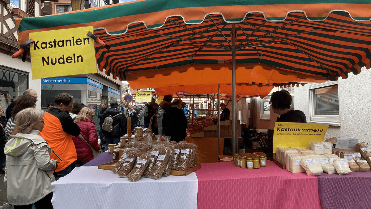 Beim Keschdefeschd vom 03. bis 04. Oktober 2026 in Annweiler am Trifels bieten zahlreiche Stände Gerichte und Produkte von und mit der Esskastanie an. Es gibt süße und deftige Variationen, zum Beispiel Kastaniencreme, Kastanienlikör, Kastanienhonig, Kastanienbratwurst, Kastanienchutney, Kastanienknödel und Kastanienbrot. Darüber hinaus werden regionale und saisonale Produkte auf dem Markt wie Neuer Wein, Wildprodukte, französischer Käse, Schafsprodukte sowie Dekoration angeboten.