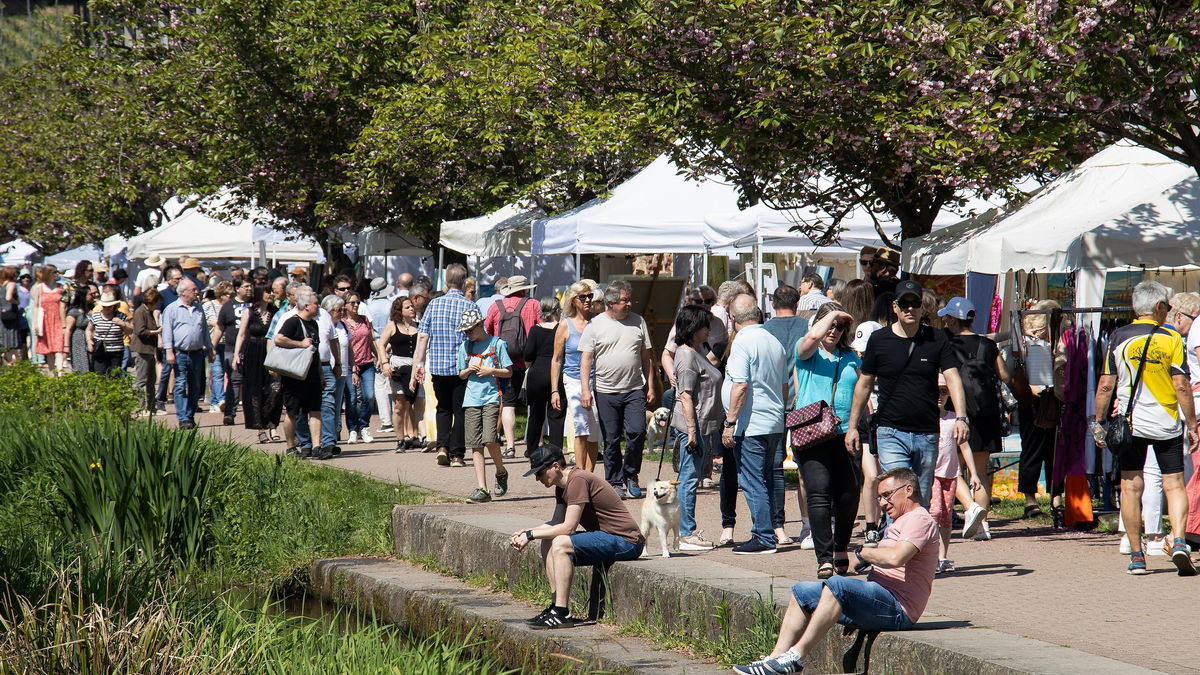 Zum Flanieren lädt der Kunstmarkt am Gradierbau ein. Auf beiden Seiten des Gradierbaus stehen insgesamt über 100 Stände mit Angeboten aus Deutschland, Italien und den Niederlanden bereit und laden zum gemütlichen Bummeln und Einkaufen ein. Von Malerei und Keramik über Skulpturen und Holzarbeiten bis hin zu Schmuck und Kleidung ist alles vertreten.