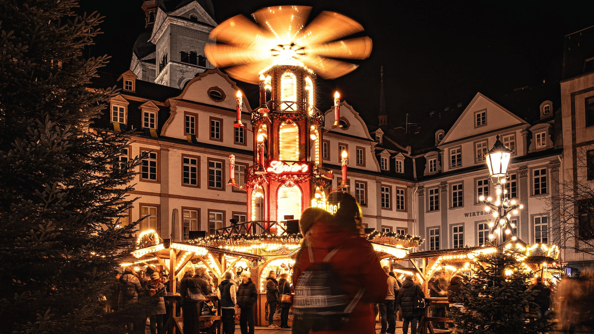 Auch zur Adventszeit ist Koblenz einen Besuch wert! Der Weihnachtsmarkt liegt mitten in der Altstadt an sieben historischen Plätzen. Bei dieser besonderen Führung erhalten Sie nicht nur Einblick in die spannende Stadtgeschichte, sondern lauschen außerdem weihnachtlichen Anekdoten, bevor Sie die Führung mit einem Glühwein (nicht im Preis enthalten) ausklingen lassen können.