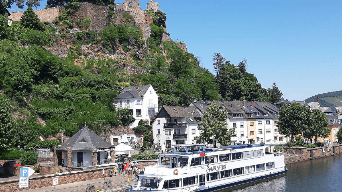 Im Pavillon oberhalb der Schiffsanlegestelle präsentieren Winzer von Saar und Obermosel ihre Weine. Jeden Monat wechselt das Weingut und es gibt ein neues Weinangebot.