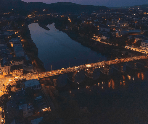Flussüberquerung - natürlich. Verkehrsknotenpunkt - ganz sicher. Aber auch: Sitzgelegenheit? Feiergelegenheit? Weingenussort? Diese Zuschreibungen hat die Römerbrücke in den vergangenen Jahrhunderten eher selten erlebt. Doch am 6. und 7. Juni ist es soweit: Beim "Brückenglück" sind alle eingeladen, sie zu feiern. Sich zu feiern. Und natürlich den Abend. Euer Open-Air-Picknick auf den aufgestellten Bänken oder auf den freien Plätzen daneben könnt ihr selbst mitbringen oder euch an unseren ausgewählten Wein- und Genussständen verwöhnen lassen. Dann genießt ihr den unverstellten Blick auf die mondglitzernden, sanften Wellen der Mosel, auf die beruhigend in der leichten Abendbrise schwingende Uferböschung oder auf die ausnahmsweise nicht von Autos, sondern von Menschen bevölkerte Brücke selbst.