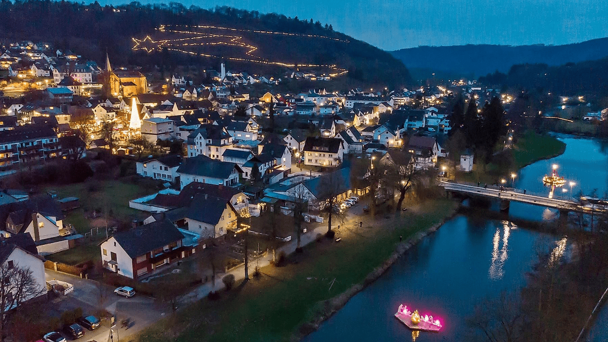 Die große Naturwurzelkrippe in der Pfarrkirche Maria Himmelfahrt kann auch in diesem Jahr wieder an ihrem Stammplatz aufgebaut werden. Die weiteren Highlights sind der "Stern von Bethlehem" - ein mit 3.500 Glühbirnen und über 30 Krippen bestückter Wanderweg, schwimmende Krippe und schwimmender Adventskranz auf der Wied, die lebensgroßen Figuren aus dem Erzgebirge auf der Kirchtreppe, die Freilandkrippe und die Schwibbogen-Krippe. Für ein goldenes Funkeln in der Dorfmitte sorgt die Weihnachts-Illumination am 18 m hohen Zunftbaum mit 6 m Durchmesser und fast 10.000 LEDs.