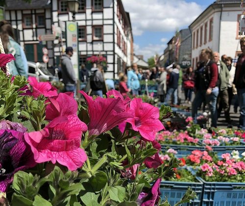 Kommern, das Tor zur Eifel, ist wieder Anziehungspunkt für Blumenliebhaber. Im historischen Ortskern inmitten der alten Fachwerkhäuser, das Älteste stammt aus dem Jahr 1529, findet der traditionelle Blumen- Kleintier-und Bauernmarkt statt. Mit dem Markt beginnt die Gartensaison.