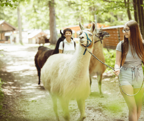 Mit den flauschigen Alpakas und den gutmütigen Lamas durch den erfrischenden Wald des Naturparks zu spazieren macht Spaß und zaubert großen und kleinen Tierliebhabern ein Leuchten in die Augen.