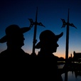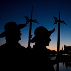 Die Steyrer NachtwächterInnen in alter Tracht mit Hellebarde, Laterne und Horn erwarten Sie auf der Terrasse der Orangerie.