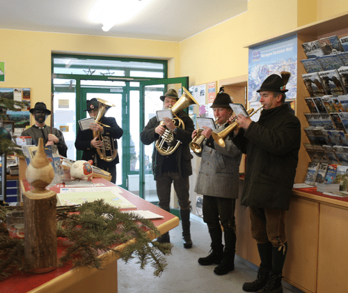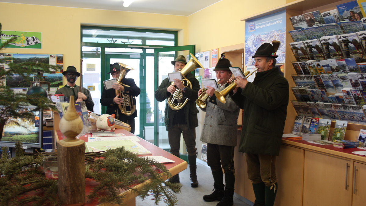 Jedes Jahr Ende Dezember machen sich die Neujahrsbläser auf den Weg durch Gosau und spielen bei jedem Haus auf. Mit diesen Klängen wünschen Sie den Einheimischen und Gästen ein gutes neues Jahr, viel Glück und Erfolg in den kommenden Monaten.