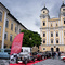 08:00 Uhr: Startaufstellung am Kirchenplatz Mondsee. Die Steinböden werden wie alljährlich durch Abdeckungen unterm Auto gesichert.