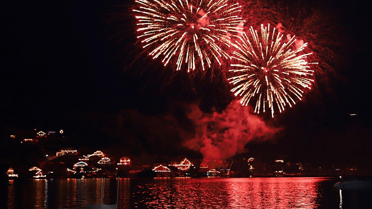 Liebevoll beleuchtete Häuser in der Winkelbucht, Beleuchtung der Sonnstein-Silhouette, Feuerwerke in der Winkelbucht.22:00 Uhr: Haupt-Feuerwerk vor dem Festgelände