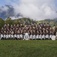 Die Tracht der Musikanten besteht aus einem schwarzen Hut mit Dachsbart, braunem Uniform Rock, roten Leib, schwarzer Kniebundhose mit grünen Stutzen.