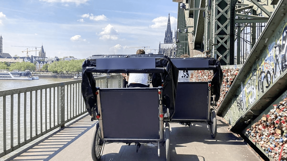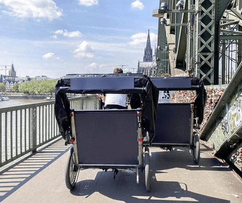 Mit der Rikscha auf Tour durch Köln Schlage 2 Fliegen mit einer Klappe! Lasst euch in einer Rikscha durch die Kölner Innenstadt an alle Hot Spots fahren und euch vom sportlichen Guide die Kölsche Geschichte erklären . Wusstet ihr, dass die Gebeine der Heiligen Drei Könige im Kölner Dom liegen? Der historische Malakoffturm, unweit vom Rheinauhafen entfernt, ist ein Überbleibsel aus der preußischen Zeit und einen kurzen Besuch wert. Ihr entscheidet, wo ihr für eure Fahrt abgeholt werdet und wo sie endet. Wie wäre es mit dem bekannten Schokoladenmuseum als Wunschendpunkt? Oder ihr gönnt euch zum Abschluss am Rhein 1, 2 oder 3 Kölsch. Legt die Beine hoch und genießt die kölsche Luft bei eurer Rikschafahrt. Habt einen schönen Tach und Tschö! Inhalt Rikscha-Sightseeing-Tour durch Köln Betreuung durch einen erfahrenen Guide Teilnehmer Gutschein gültig für 2 Personen Gruppengröße: 2-20 Personen Dauer Ca. 1 Stunde Ausrüstung & Kleidung Mitzubringen: wetterfeste Kleidung Teilnahmebedingungen Teilnahme für Personen mit Handicap nach Absprache mit dem Veranstalter möglich