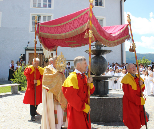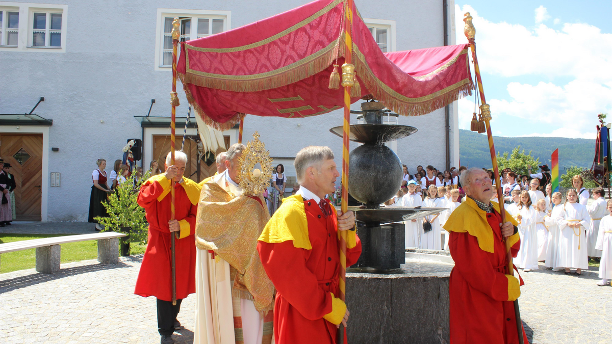 08:30 Uhr Festgottesdienst in der Wallfahrts- und Stille Nacht Basilika Mariapfarr, anschl. Prozession über Althofen"Fest des heiligsten Leibes Christi". Erinnert wird an die Gegenwart Jesus Christus im geweihten Brot (Hostie) und im Wein. Das Besondere am Fronleichnamsgottesdienst ist eine Prozession, bei der das geweihte Brot in einem wertvollen Gefäß - der Monstranz – durch die Straßen getragen wird.