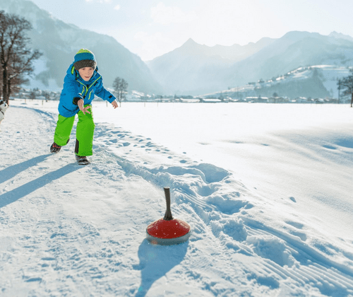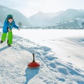 Beim Eisstockschießen nach alter Pinzgauer Tradition versuchen sowohl Erwachsene als auch Kinder ihr Glück, den Eisstock möglichst nah zum Ziel (Dotz‘n) zu schießen.