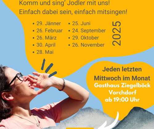 Jeden letzten Mittwoch im Monat kannst du beim Jodel Stammtisch von Sabina Haslinger teilnehmen. Bekannte Jodler singen, Neue lernen, im Gasthaus Gemütlichkeit und Gemeinschaft beim Singen erleben! Jede/r ist willkommen! Komm und sing' Jodler mit uns! Einfach dabei sein, einfach mitsingen!Bitte um freiwillige Spende für die organisierende Singleiterin Bitte um Anmeldung bei Sabina Haslinger unter 0699 11234534
