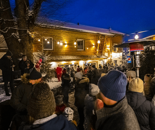 Genießen Sie Ihren Glühwein oder Punsch an den Feuerstellen und lauschen Sie den besinnlichen Klängen unserer Weisenbläser. Während die Kinder eine Kutschfahrt unternehmen, können Sie in unseren rustikalen Holzhütten Weihnachtsgeschenke aus dem regionalen Kunsthandwerk erwerben.