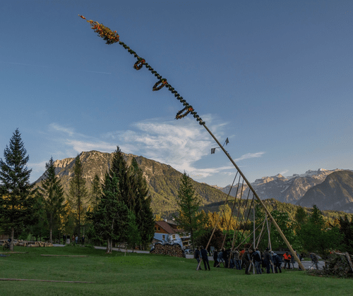 The annual erection with the ribbon-decorated wreaths on the maypole is a traditional celebration for locals and guests.