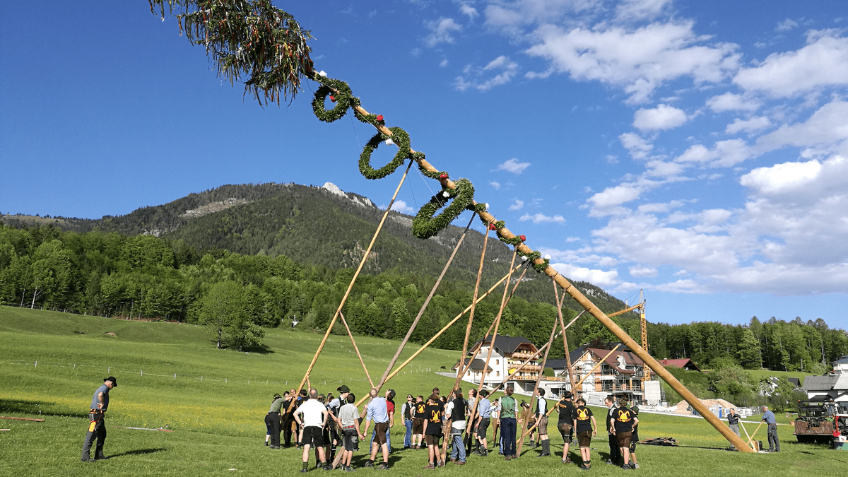 Maibaumaufstellen der Riada Perchten