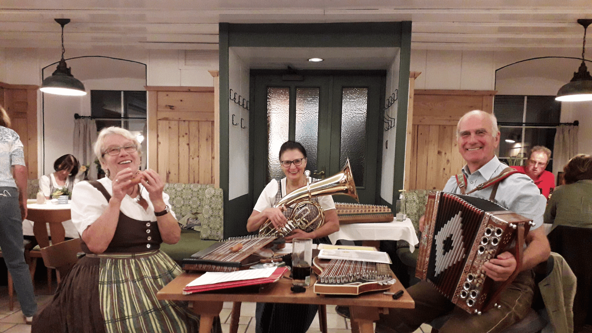 Helmut Kogler führt schon seit zwanzig Jahren durch die geselligen Abendstunden. Und durch seine Aufforderung "Jetzt singen wir gemeinsam" auch Zuhörer zum Mitsingen und Musizieren zu bringen. Liebhaber der Poesie und Volkslieder sind bei diesem Musikantenstammtisch viele vertreten.