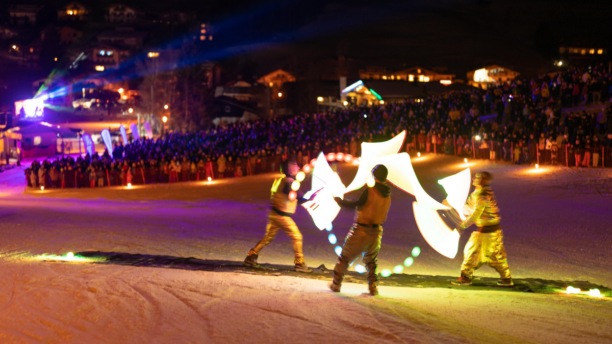 Ab 30. Dezember 2025 findet jeden Dienstag eine eindrucksvolle Abendshow statt (letzter Termin: 24. Februar 2026), bei der die Piste zur Bühne wird.