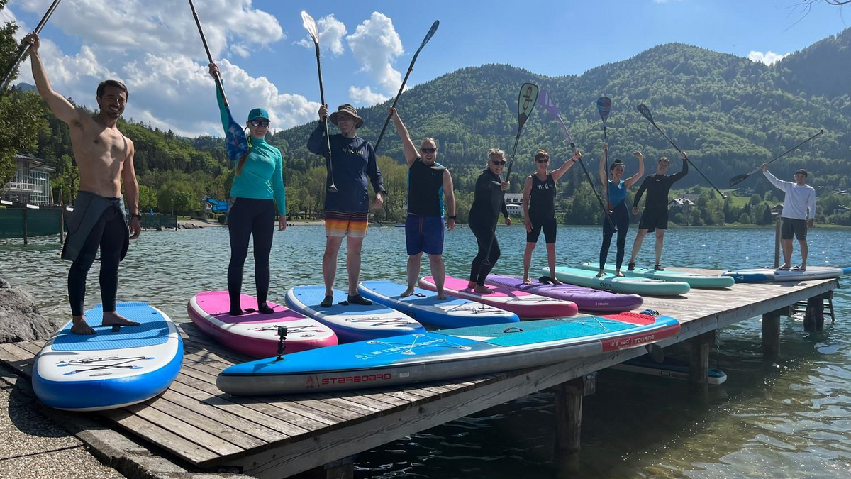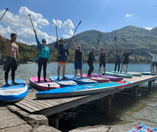 SUP CAMP MIT SUP STAATSMEISTER MIKA MAYERHOFER UND DEM SUP BOX TEAM 1.5. - 5.5.25 AM FUSCHLSEE IM SALZKAMMERGUT SUP CAMP PROGRAMM UND ABLAUF (vorläufiges Programm) für SUP Begeisterte aus Nah und Fern (inkl. oder exkl. Übernachtung buchbar) - auch nur tageweise buchbar Donnerstag Nachmittag: Start: 13.00 Uhr - get together beim Hotel Seerose am Fuschlsee